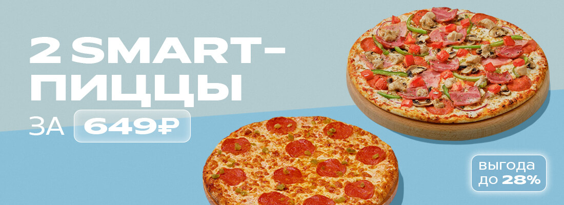 Выбери две разные smart-пиццы и закажи их всего за 649 рублей.