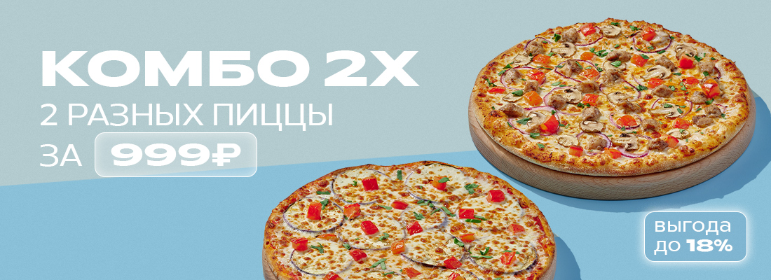 Выбери две разных пиццы 30 см всего за 999 руб.